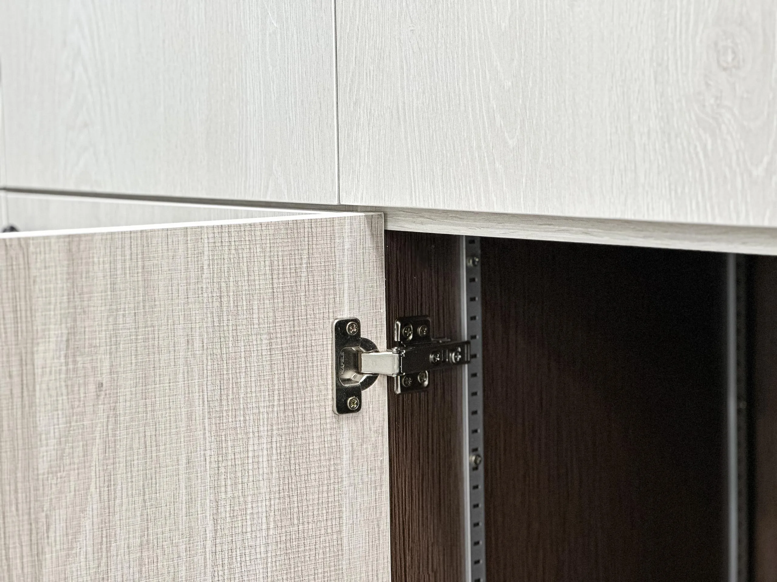 Experience the seamless blend of practicality and design with our custom kitchen cabinets, expertly crafted from high-quality plywood and finished with sleek laminate.
