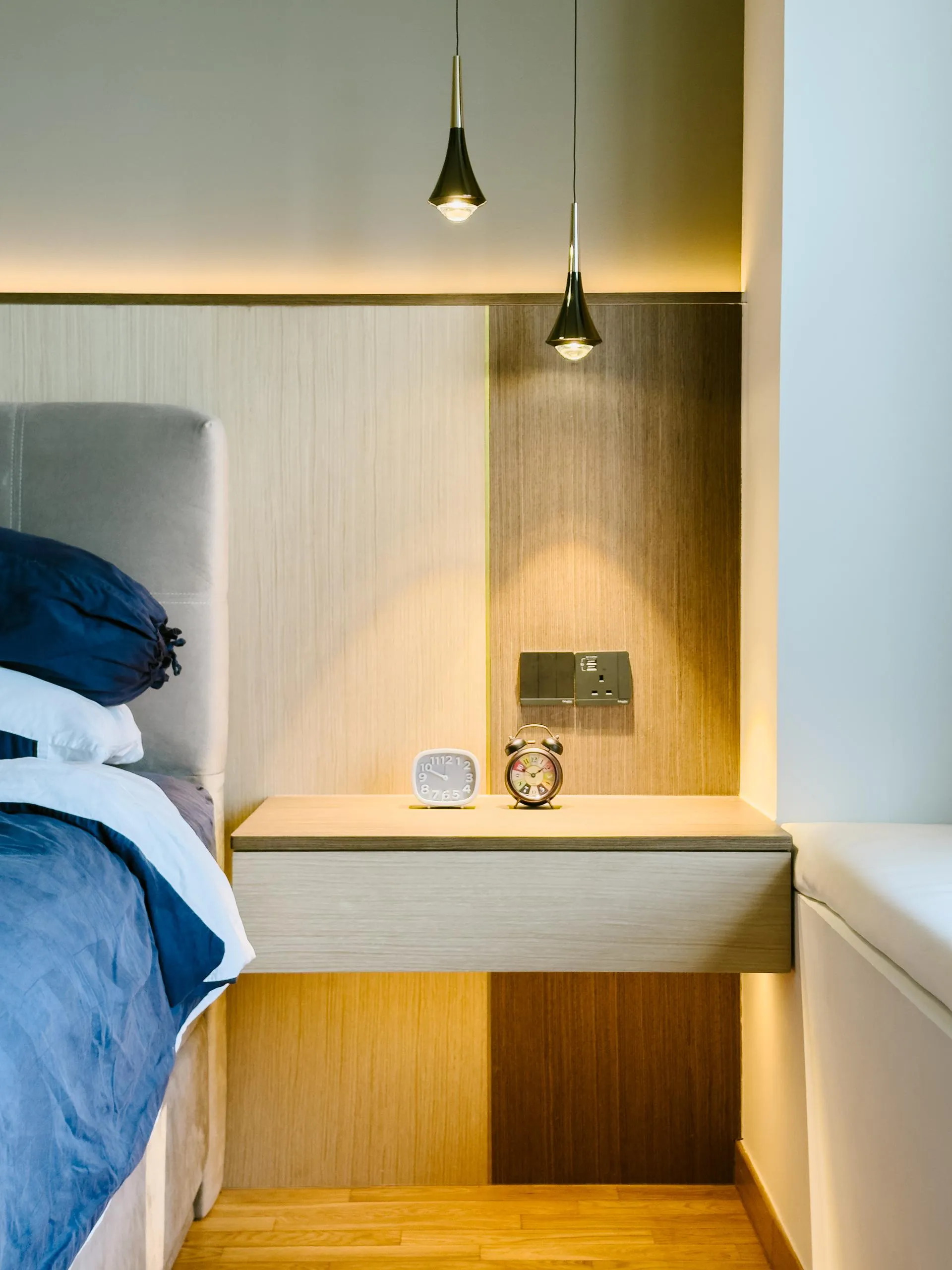 This interior refresh at Sky@Eleven Condo reflects a deliberate move toward restraint and calm. Tasked with undoing a poorly executed prior renovation, the design direction focused on reintroducing clarity, consistency, and quiet elegance across key spaces — the wet kitchen, hallway, bedroom, and internal doors.